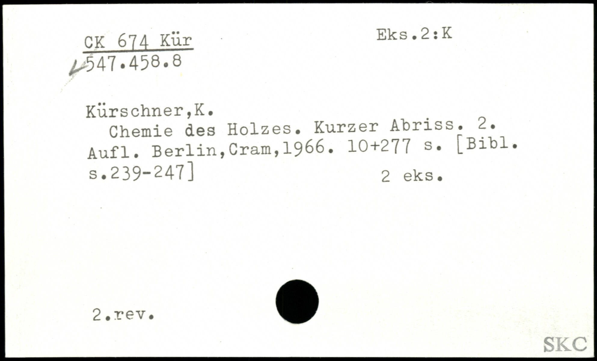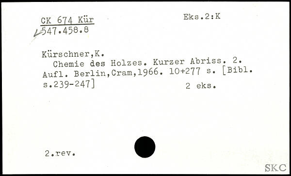 Chemie des Holzes. Kurzer Ahriss. . Aufl.