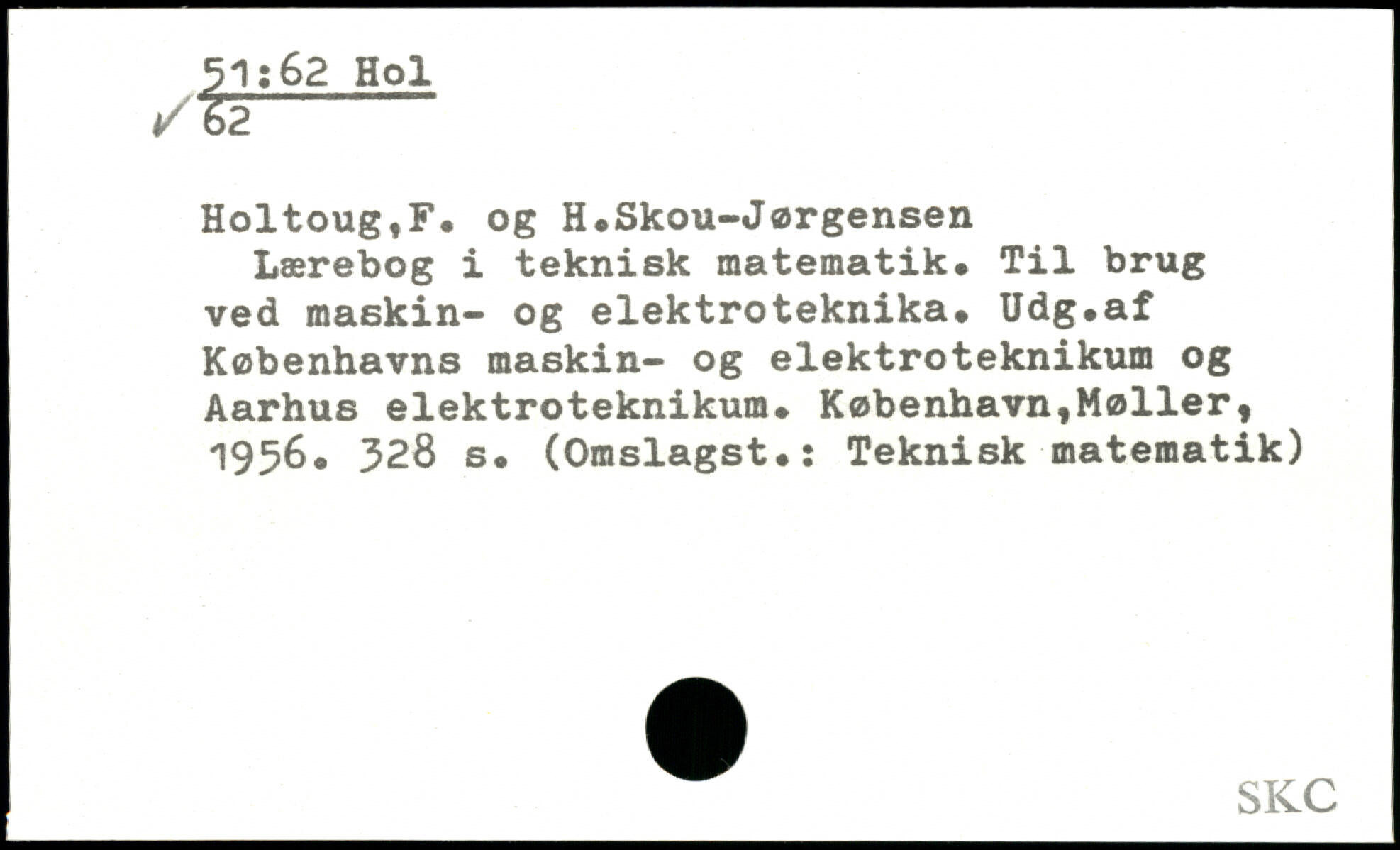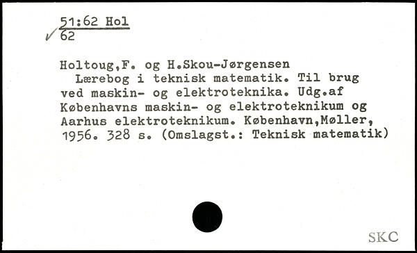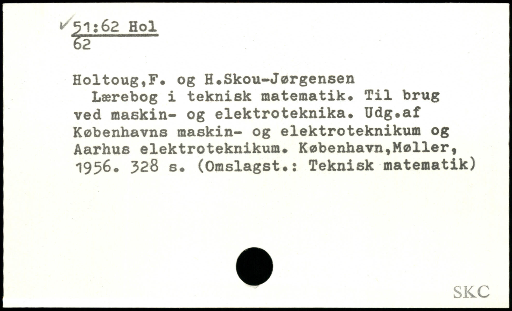 Lærebog i teknisk matematik. Til brug ved maskin- og elektroteknika. Udg.af Københavns maskin- og elektroteknikum og Aarhus elektroteknikum.