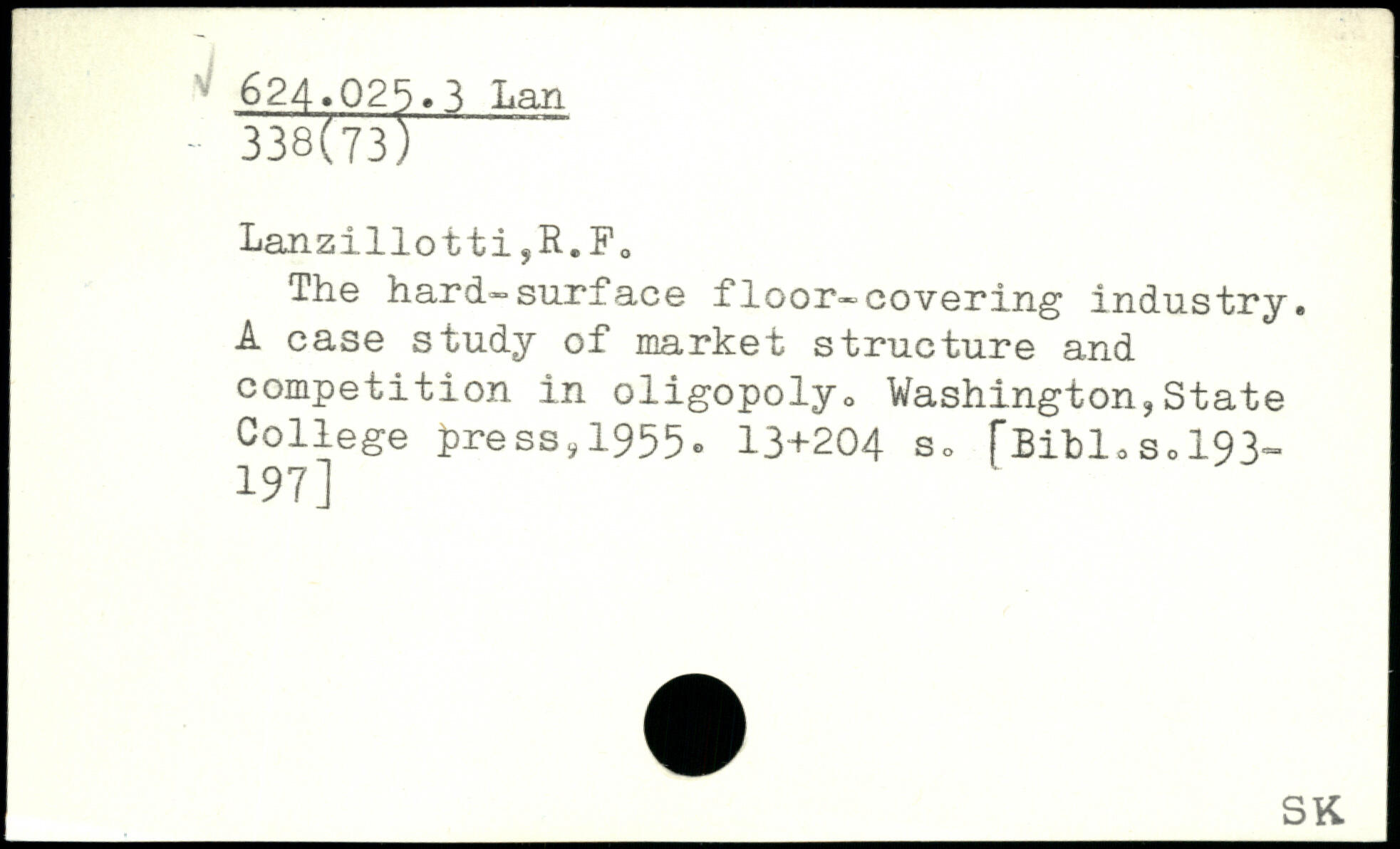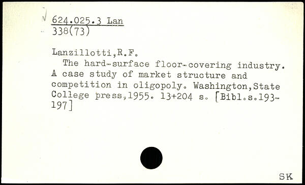 The hard-surface floor-covering industry. A case study of market structure and competition in oligopoly, Washington,State College £ress,19550