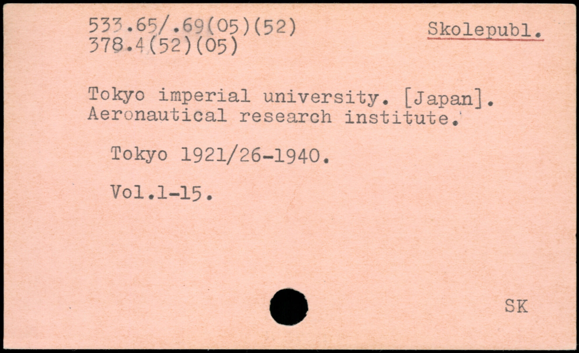 Tokyo imperial university. [Japan]. Aeronautical research institute.