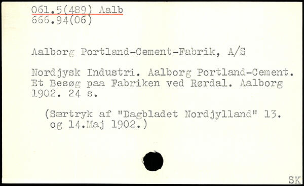 Aalborg Portland-Gement-Pabrik, A/S Nordjysk Industri. Aalborg Portland-Cement. Et Besøg paa Fabriken ved Rørdal.