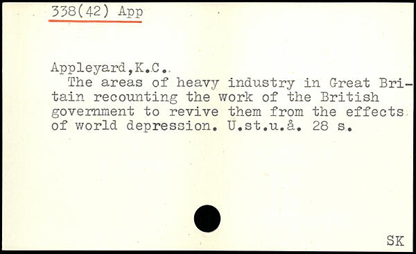 The areas of heavy industry in G-reat Britain recounting the work of the British government to revive them from the effects of world depression, U.st.u.a.