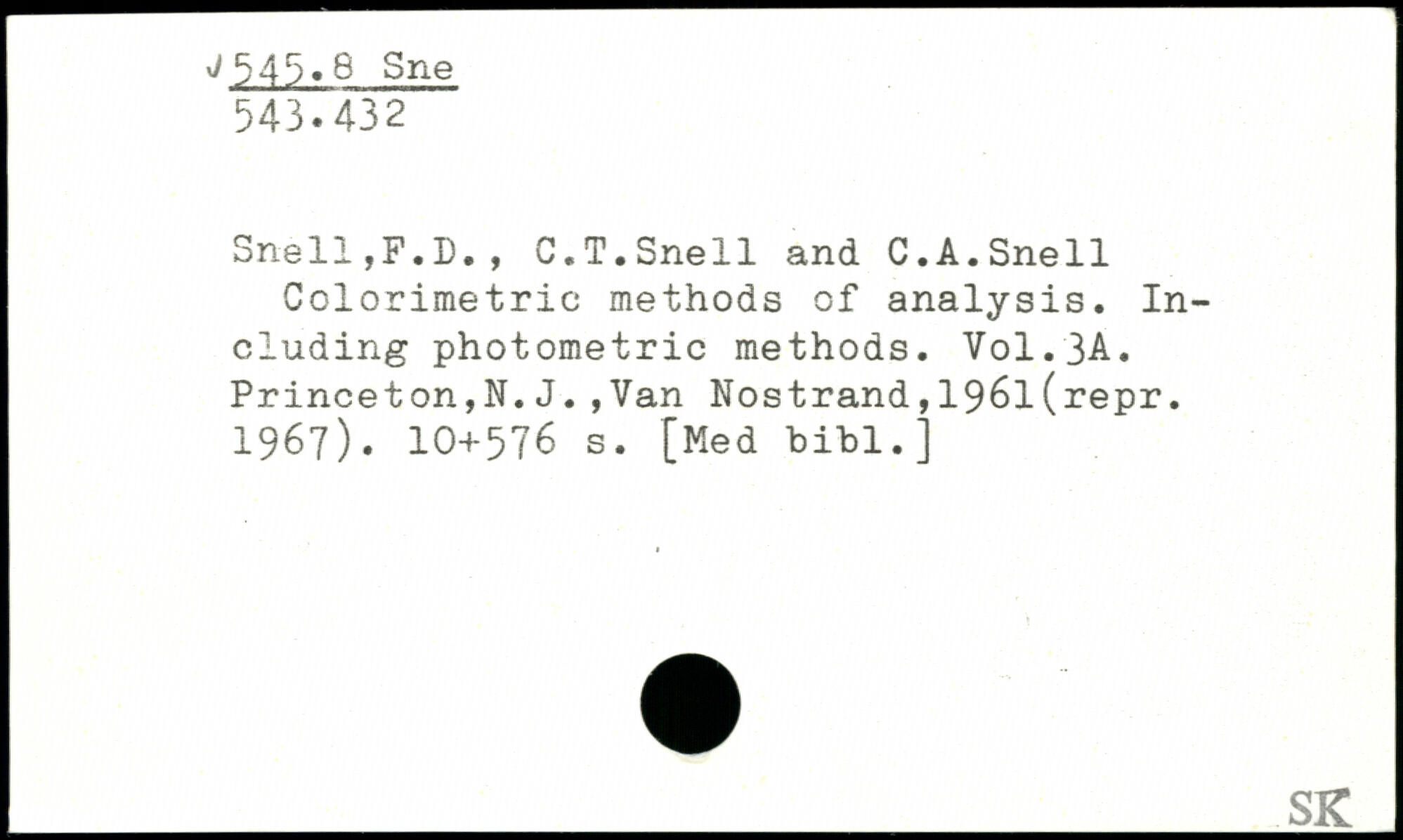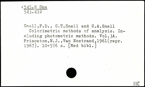 Snell,F.D., C.T.Snell and C.A.Snell Colorimetric methods of analysis. Including photometric methods.