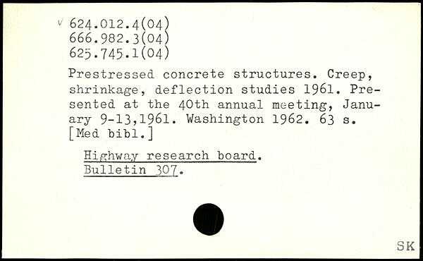 Prestressed concrete structures. Creep, shrinkage, deflection studies 1961. Presented at the 40th annual meeting, January 9-13,1961.
