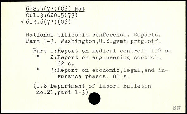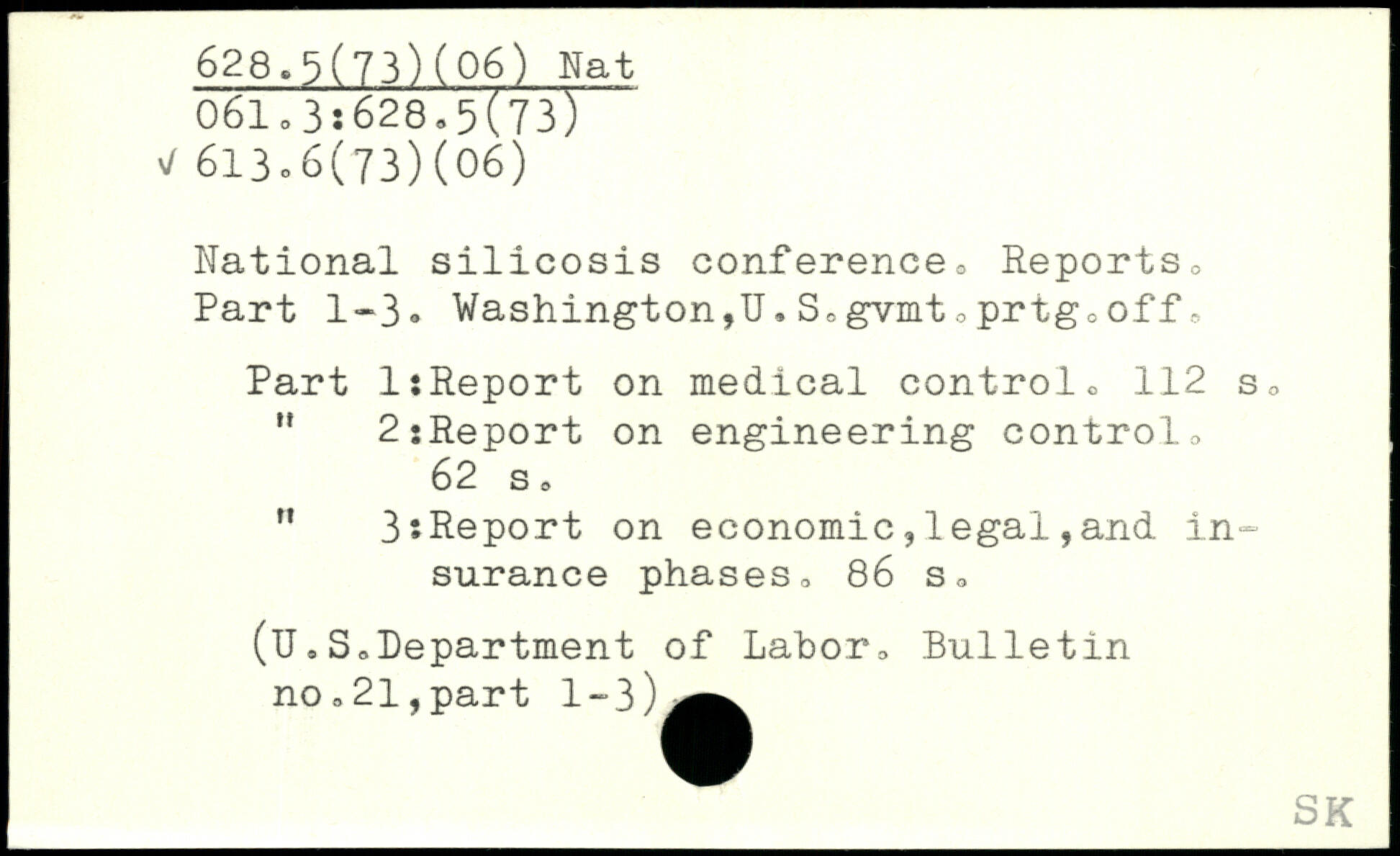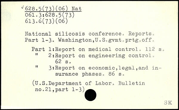 National silicosis conference, Reports,, Part 1-3® Washington,U. S.gvmt, prtg.off, Part lsReport on medical control