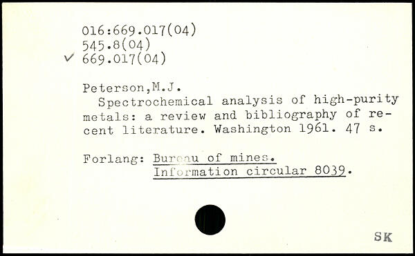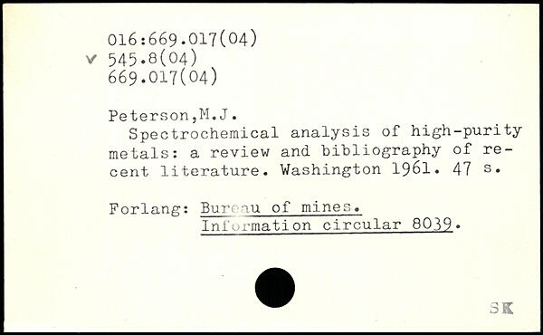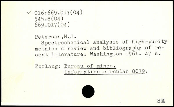 Spectrochemical analysis of high-purity metals: a review and bibliography of recent literature.
