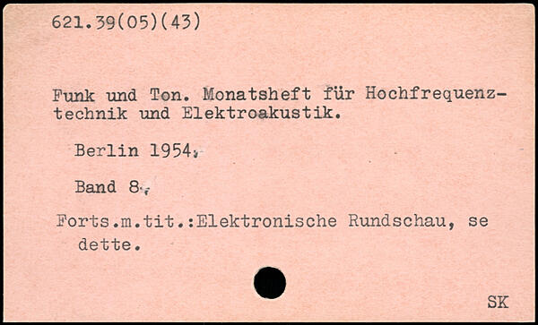 Funk und Ton. Monatsheft für Hochfrequenztechnik und Elektroakustik.