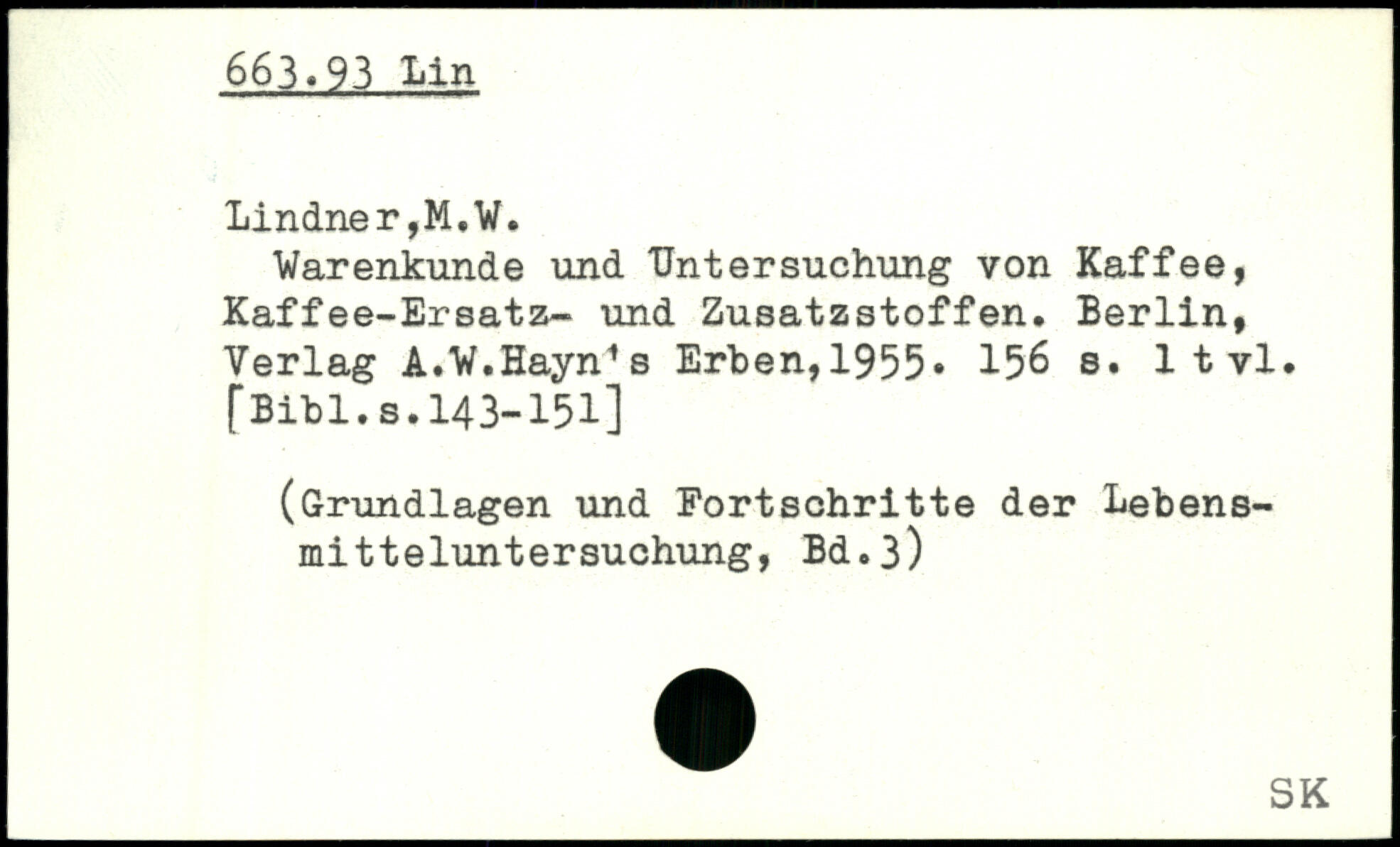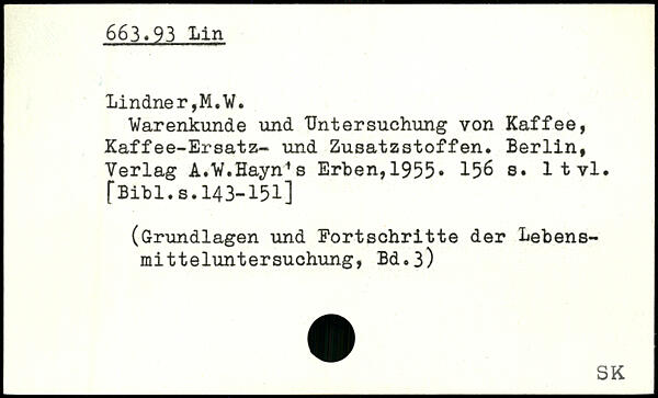 Warenkunde und Untersuchung von Kaffee, Kaffee-Ersatz- und Zusatzstoffen. Berlin, Verlag A.W.Hayn1s Erben, 1955