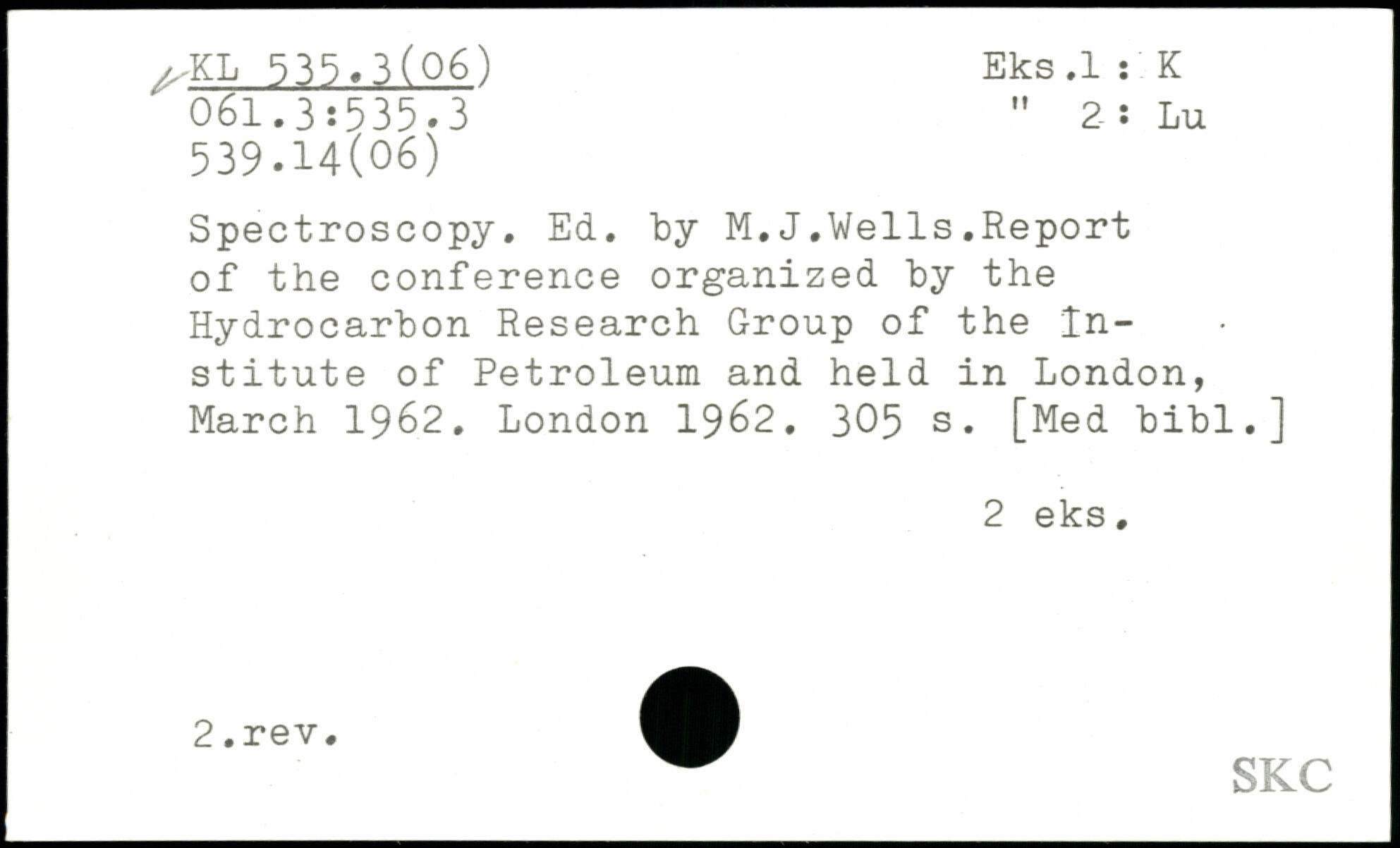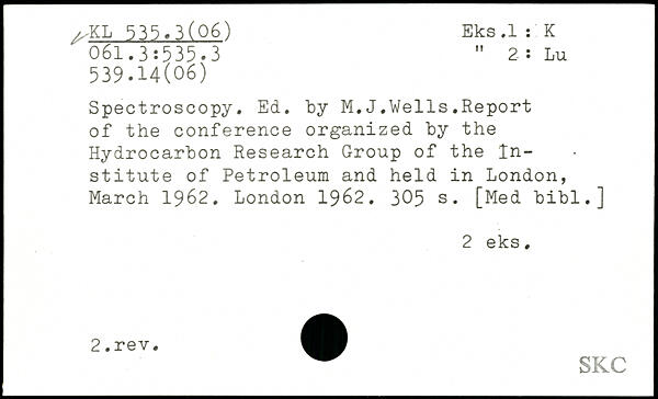 Spectroscopy. Ed. by M.J.Wells.Report of the conference organized by the Hydrocarbon Research Group of the Institute of Petroleum and held in London, March 1962.
