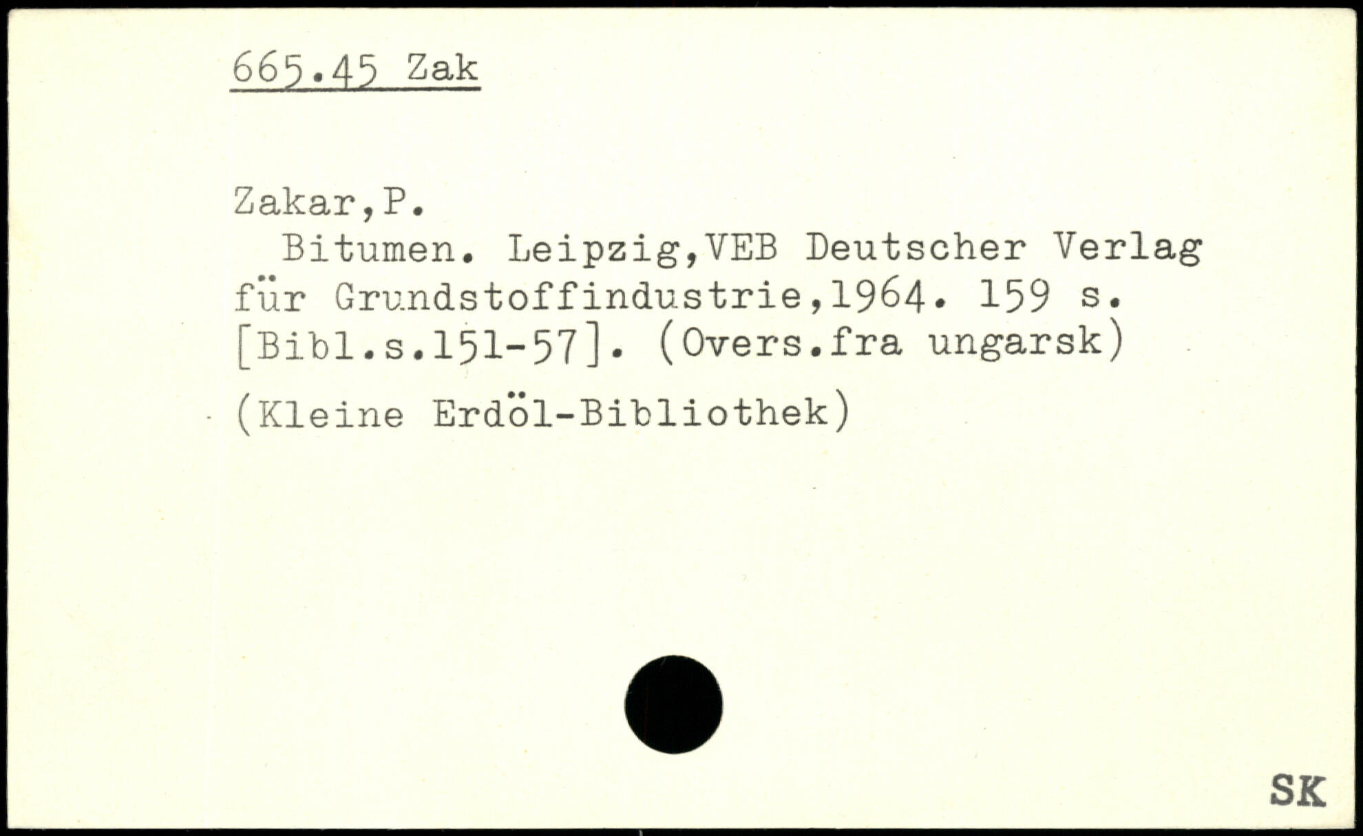 Bitumen. Leipzig,VEB Deutscher Verlag für Grundstoffindustrie,1964.