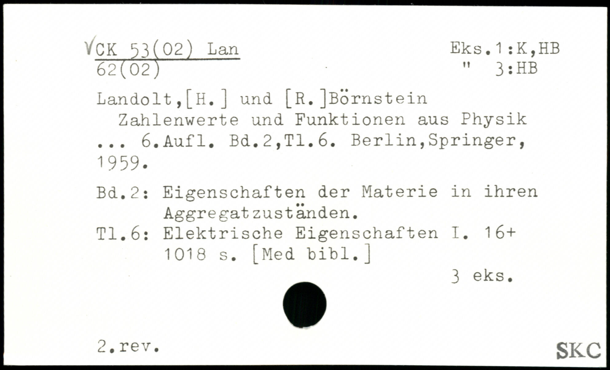 Landolt,[H.] und [R.]BÖrnstein Zahlenwerte und Funktionen aus Physik ...