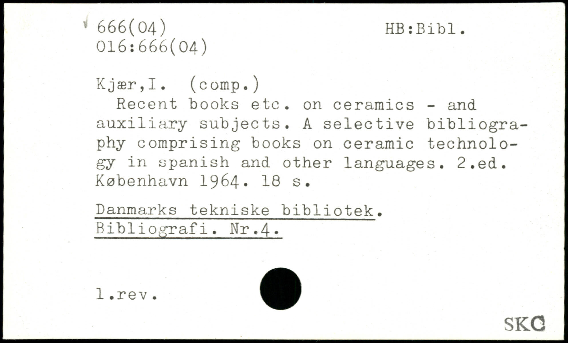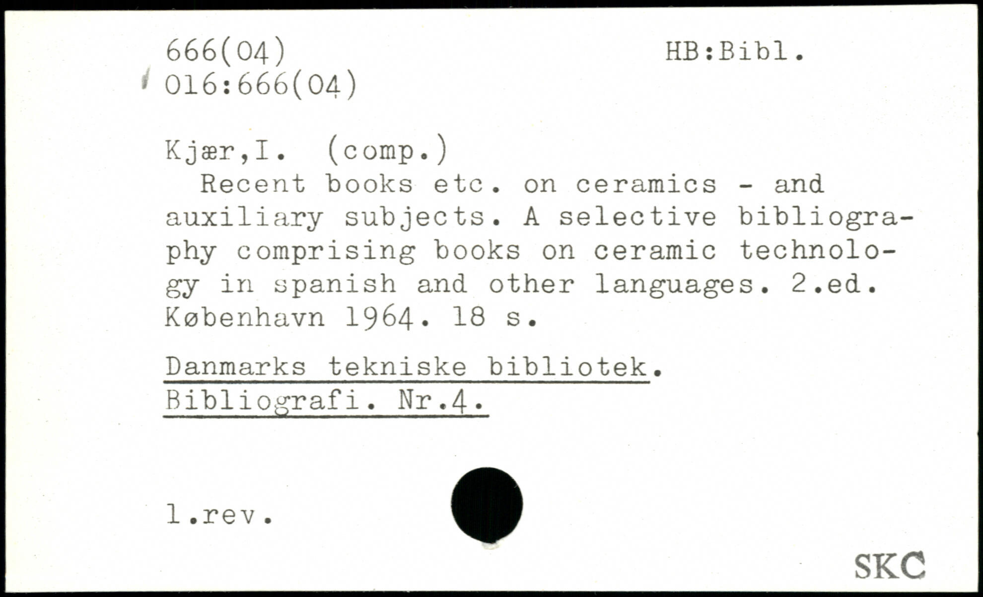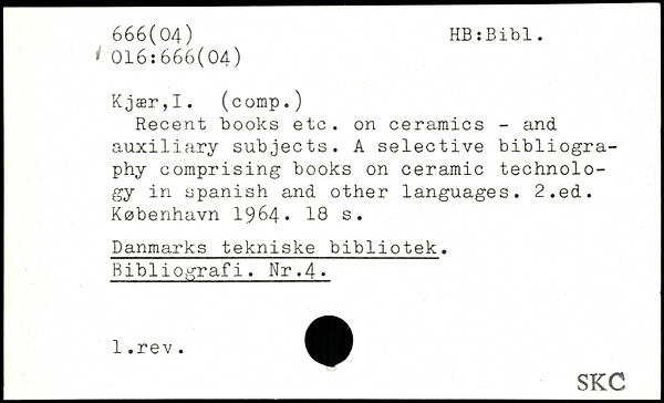 Recent books etc. on ceramics - and auxiliary subjects. A selective bibliography comprising books on ceramic technology in Spanish and other languages.