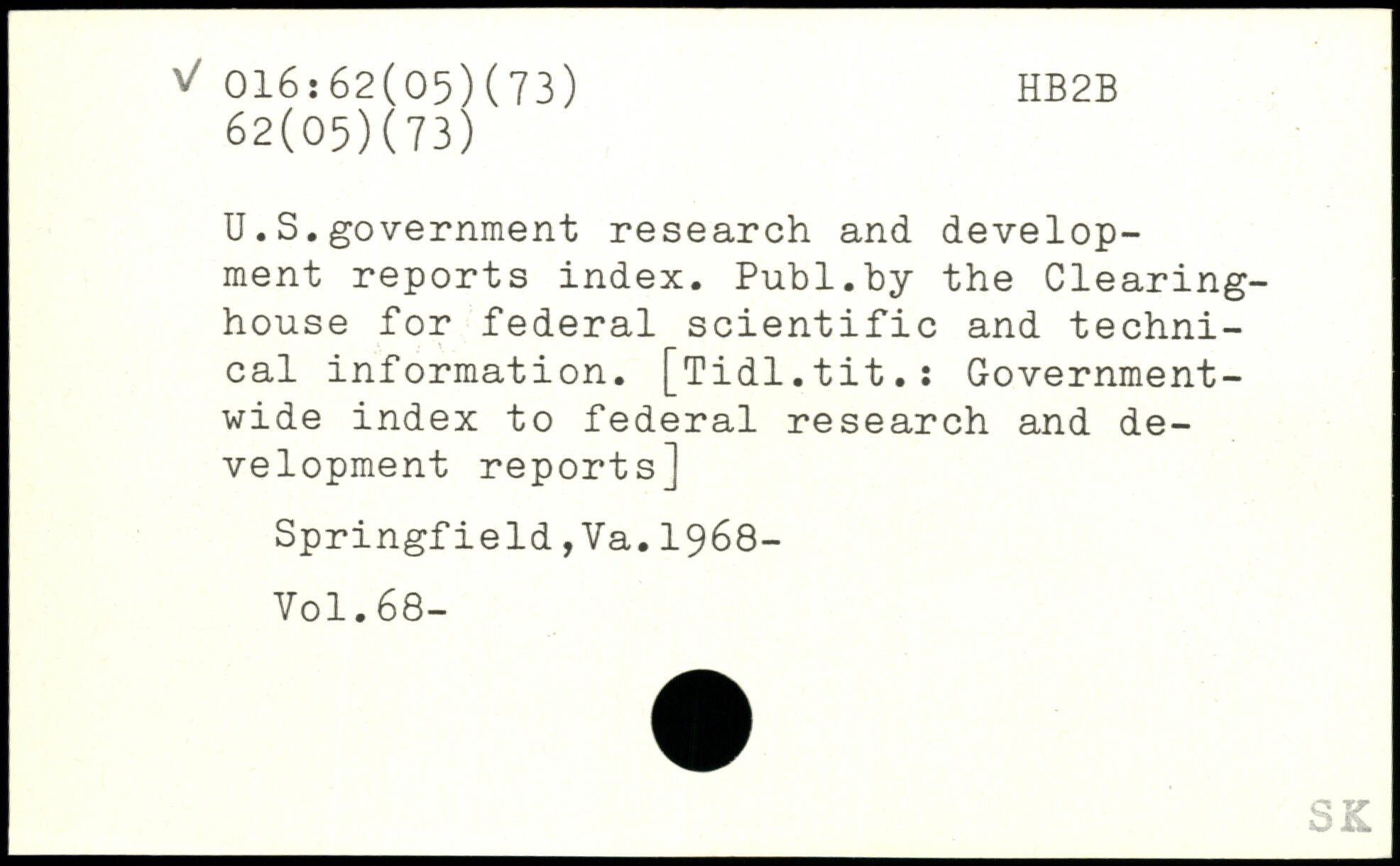 U.S.government research and development reports index.
