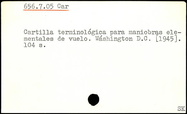 Cartilla terminolögica para maniobras ele-mentales de vuelo. Washington D.C. [1945].