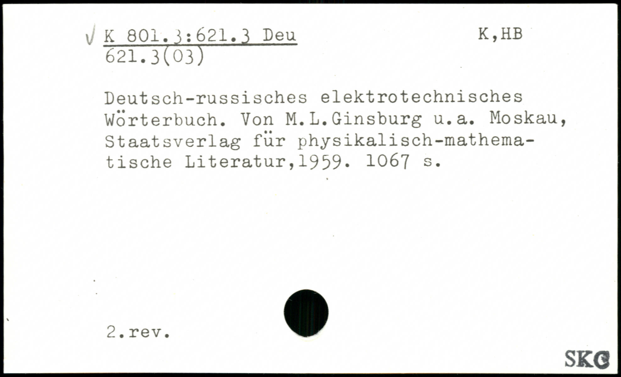 Deut sch-russisches elektrotechnisches Wörterbuch. Von M.L.Ginsburg u.a.