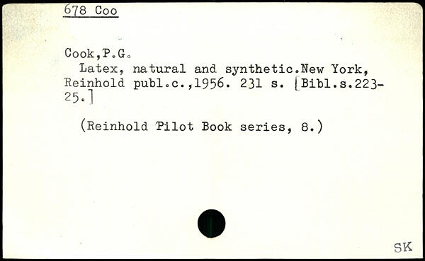 678 Coo1 Cook,PsGo Latex, natural and synthetic.New York, Reinhold publ.c.,1956.
