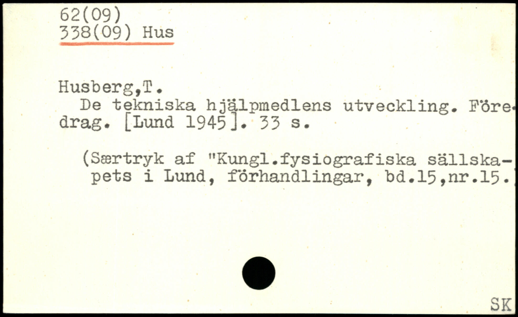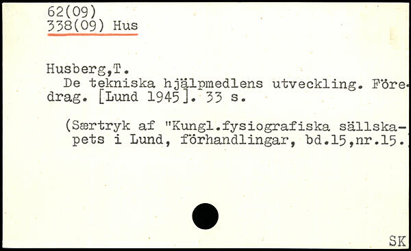 De tekniska hjälpmedlens utveckling. Före, drag. [Lund 1945].