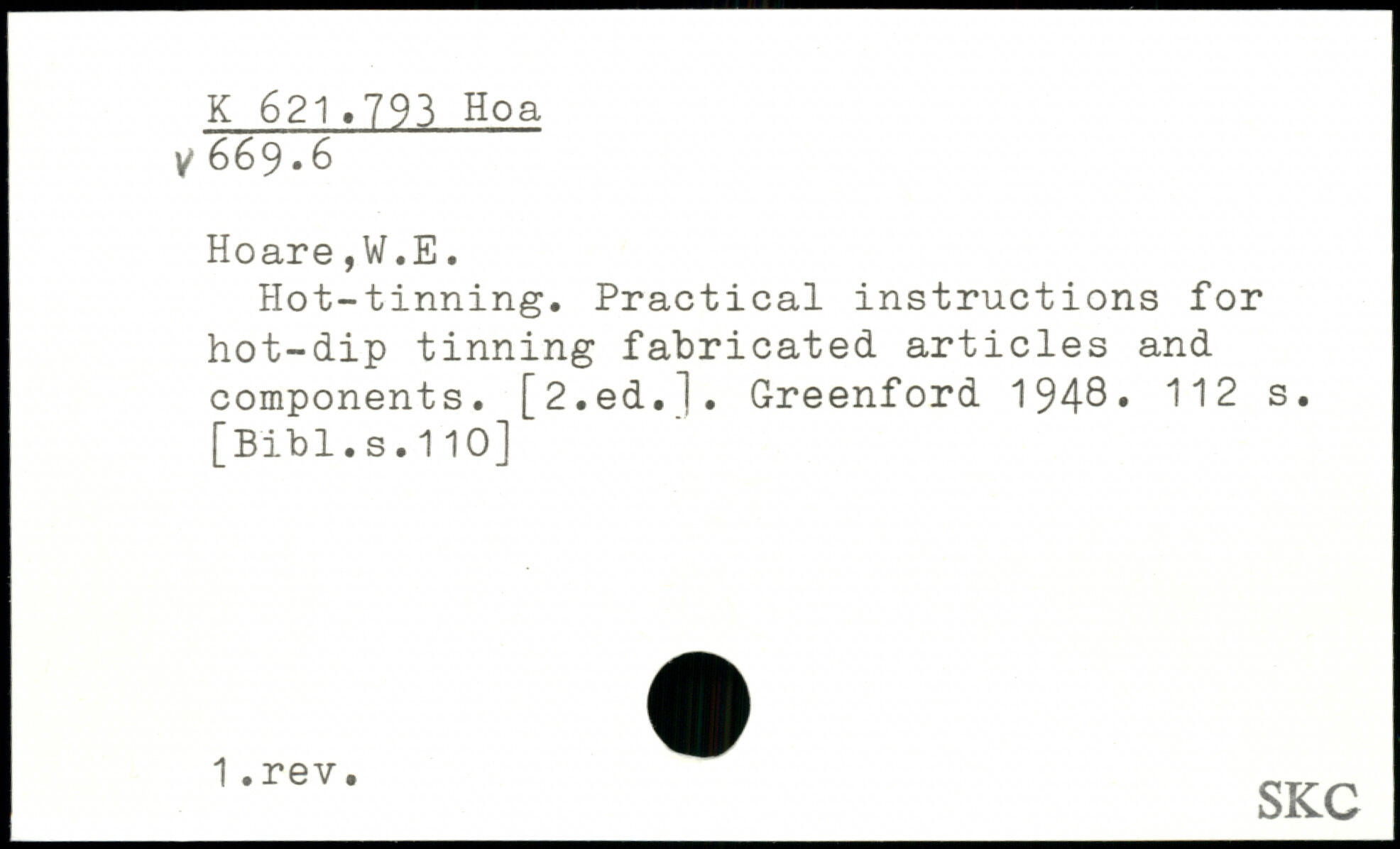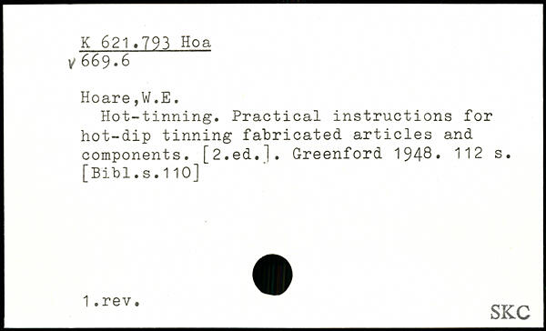Hot-tinning. Practical instructions for hot-dip tinning fabricated articles and components. [