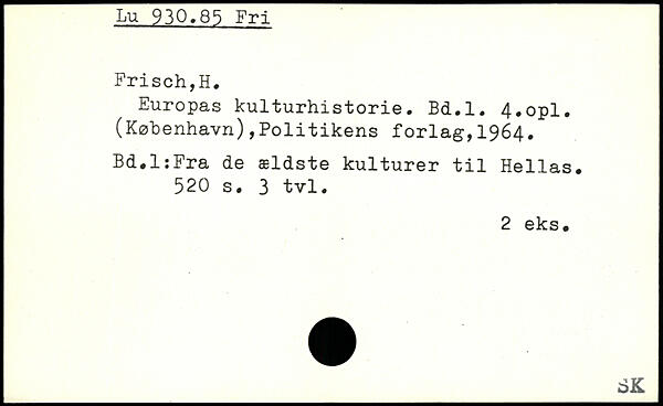 Europas kulturhistorie. Bd.l. 4,opl. (København),Politikens forlag,1964. Bd.l:Fra de ældste kulturer til Hellas.