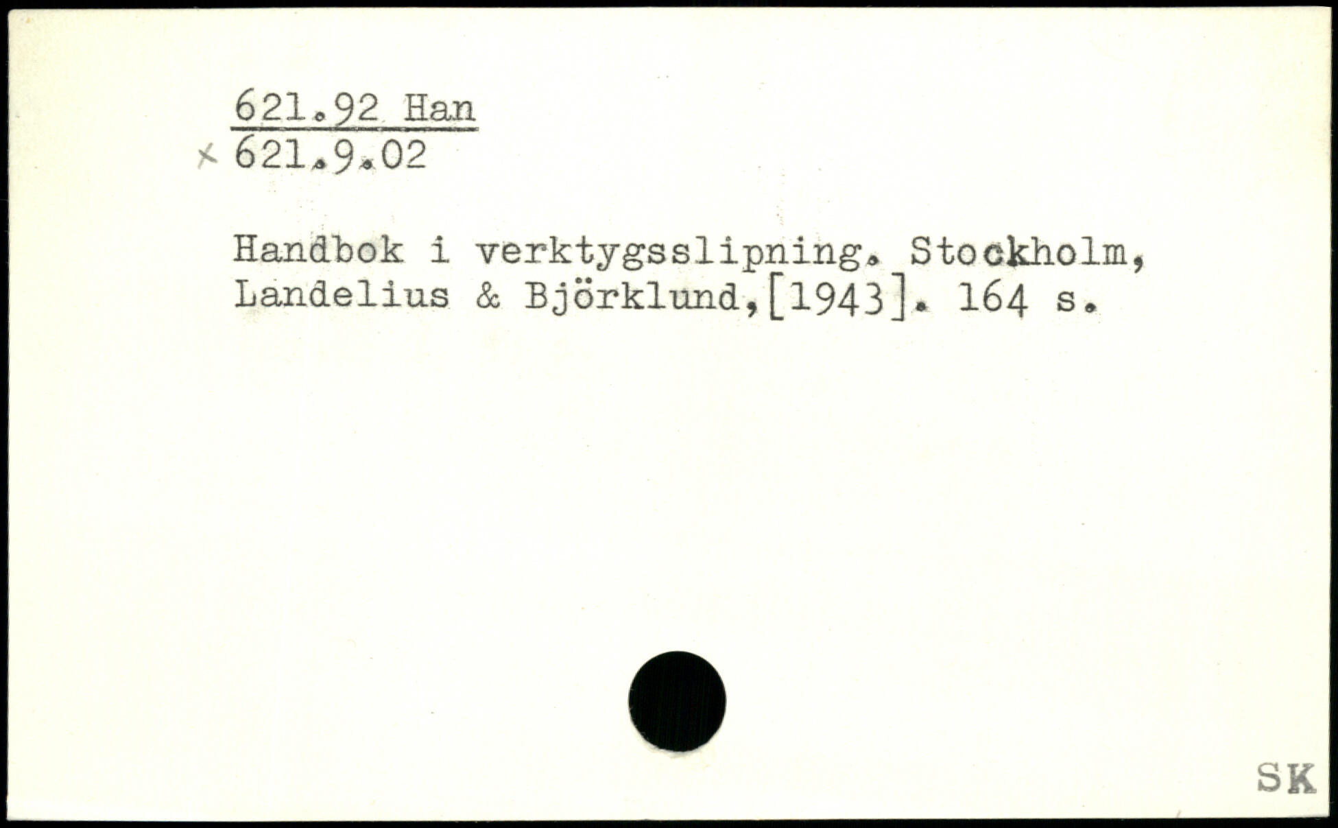 Handbok i verktygsslipning, Stockholm, Landelius & Björklund,[1943].