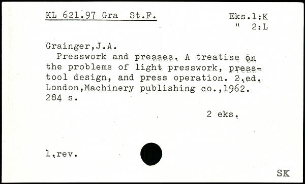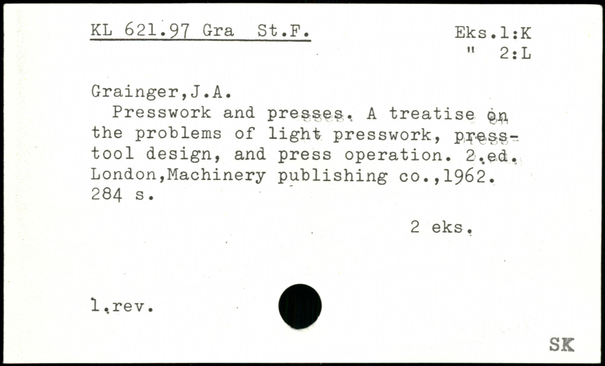 Presswork and presses, A treatise $jp, the problems of light presswork, pn^ess-tool design, and press operation. 2,ed.