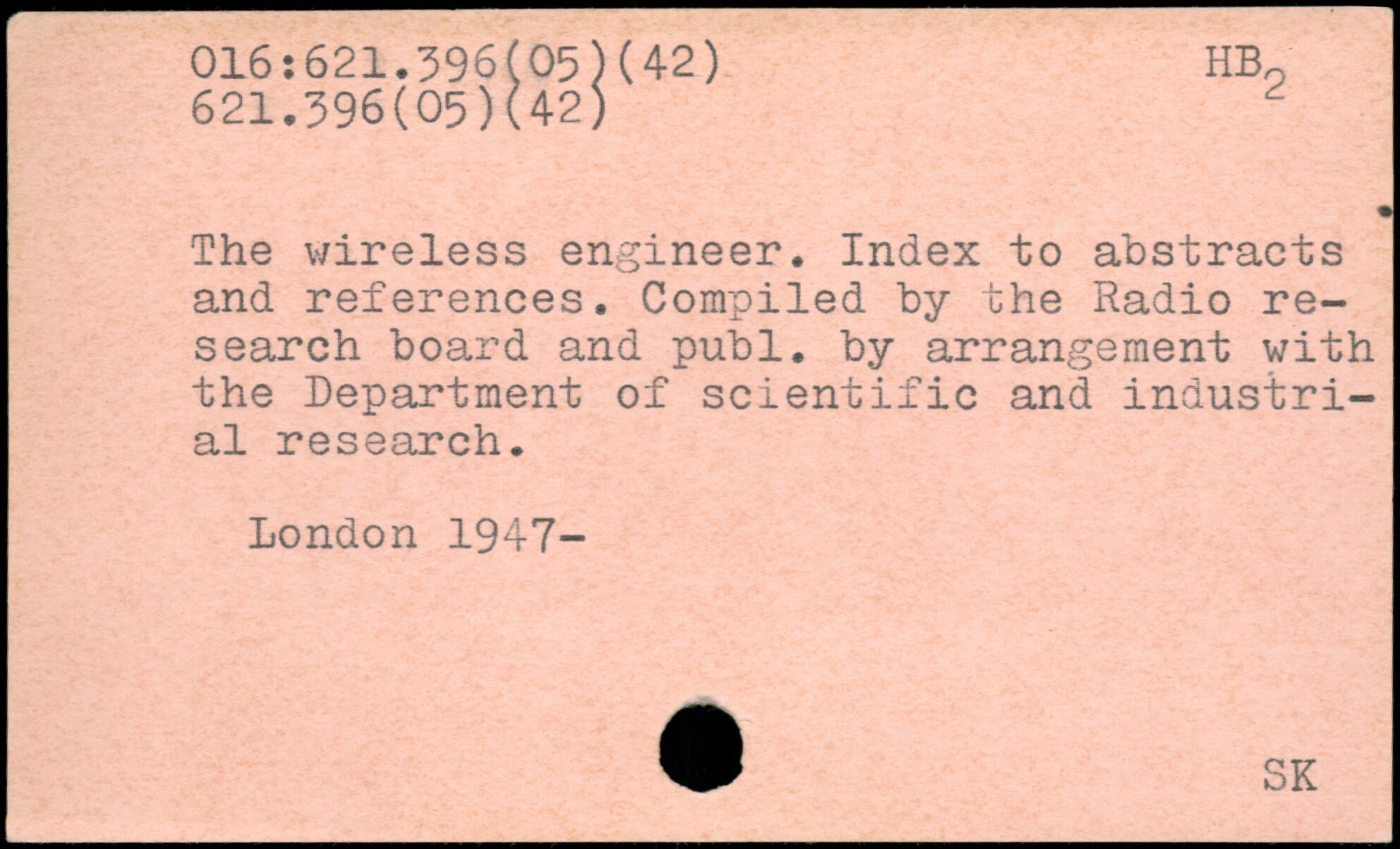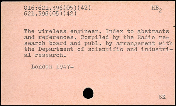 The wireless engineer. Index to abstracts and references. Compiled by the Radio research board and publ. by arrangement with the Department of scientific and industrial research.