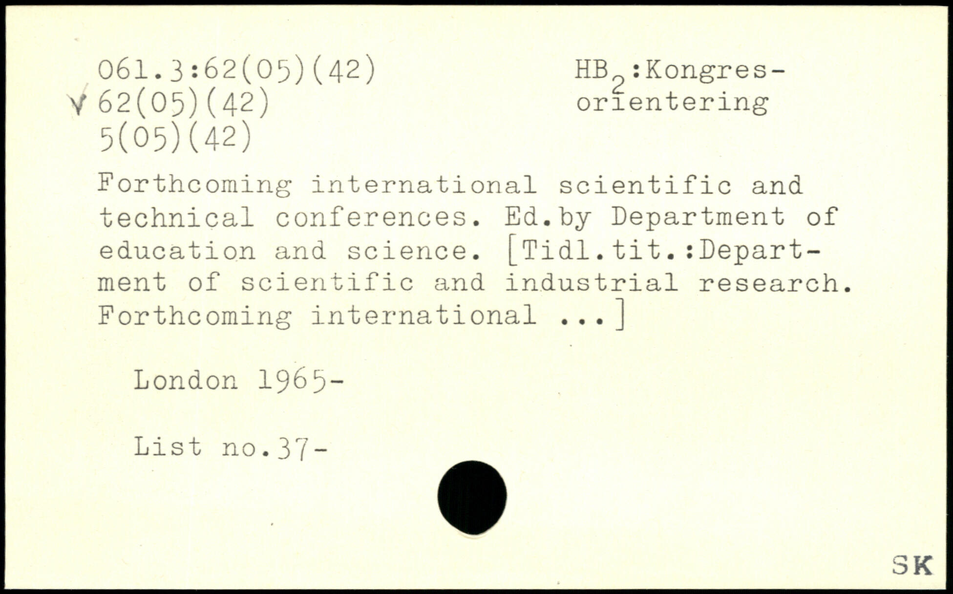 Forthcoming international scientific and technical conferences. Ed.by Department of education and science. [Tidl.titDepartment of scientific and industrial research. Forthcoming international ...]