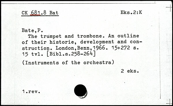 The trumpet and trombone. An outline of their historic, development and construction.
