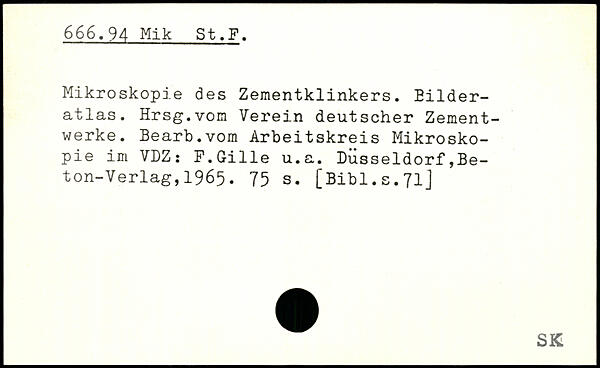 Mikroskopie des Zementklinkers. Bilderatlas. Hrsg.vom Verein deutscher Zementwerke. Bearb.vom Arbeitskreis Mikroskopie im VDZ: F.Gille u.a.
