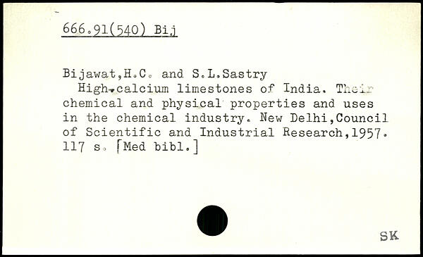 High-. calcium limestones of India. Their chemical and physical properties and uses in the chemical industry. New Delhi,Council of Scientific and Industrial Research,1957.