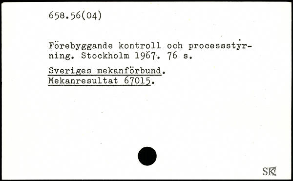 Förebyggande kontroll och processstyrning.