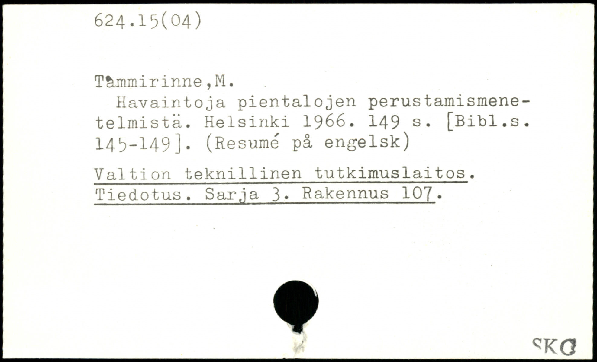 Tàmmirinne,M. Havaintoja pientalojen perustamismene-telmistâ.