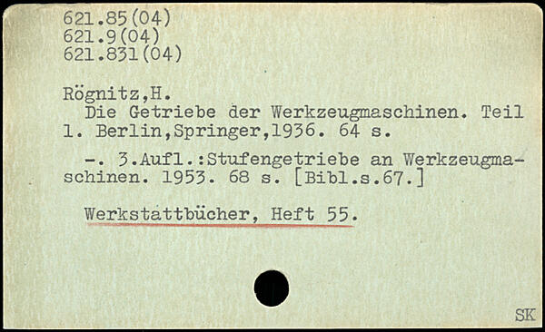 Die Getriebe der Werkzeugmaschinen. Teil 1.