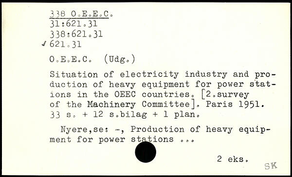 OoEoE.Co (üdgo) Situation of electricity industry and production of heavy equipment for power stations in the OEEC countries, [2,survey of the Machinery Committee]