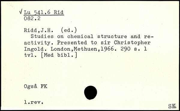 Studies on chemical structure and reactivity. Presented to sir Christopher Ingold.