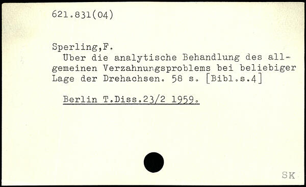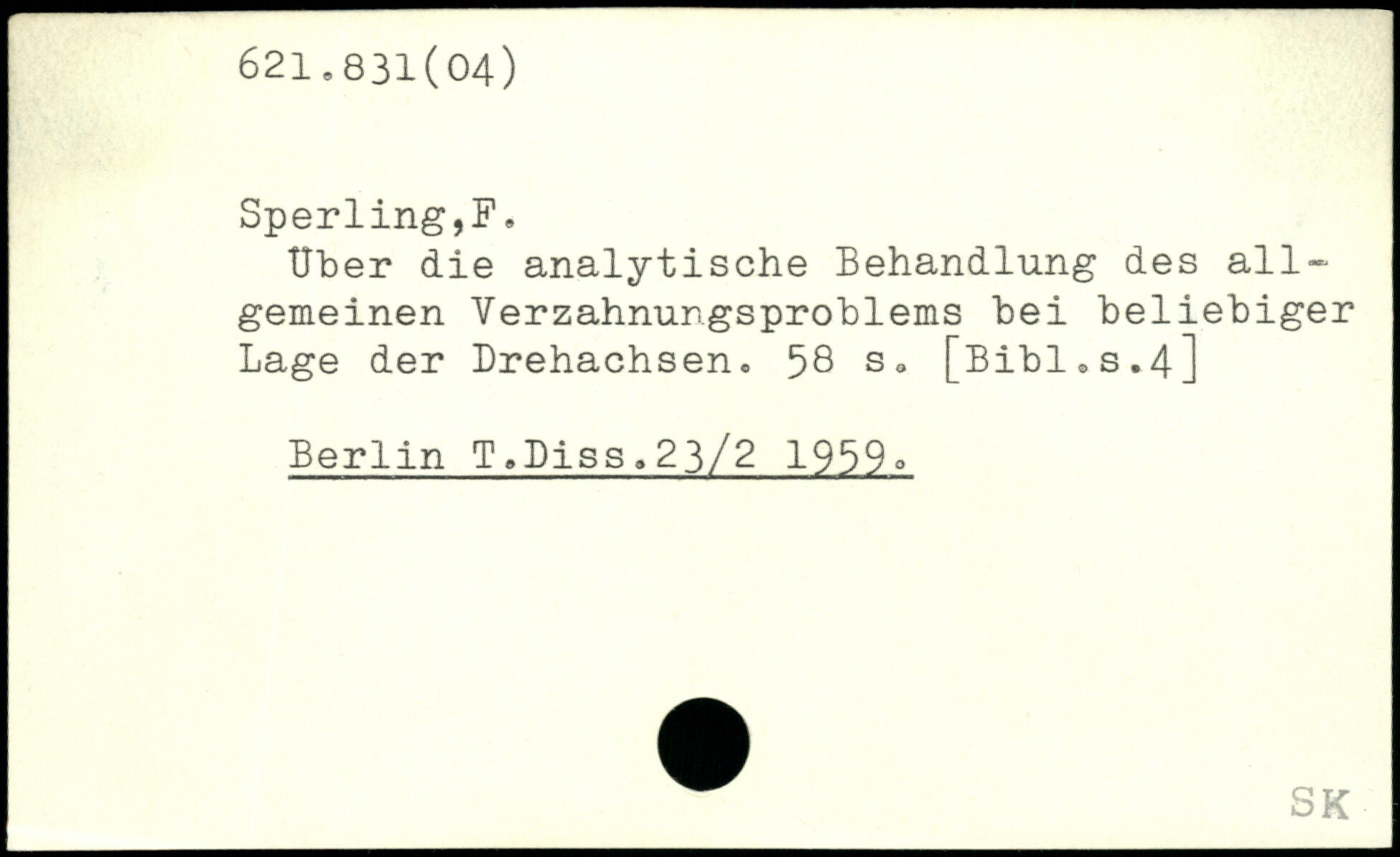 Uber die analytische Behandlung des allgemeinen Verzahnungsproblems bei beliebiger Lage der Drehachsen.