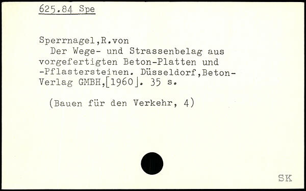 Der Wege- und Strassenbelag aus vorgefertigten Beton-Platten und -Pflastersteinen. Düsseldorf,Beton-Verlag GMBH,[1960j.