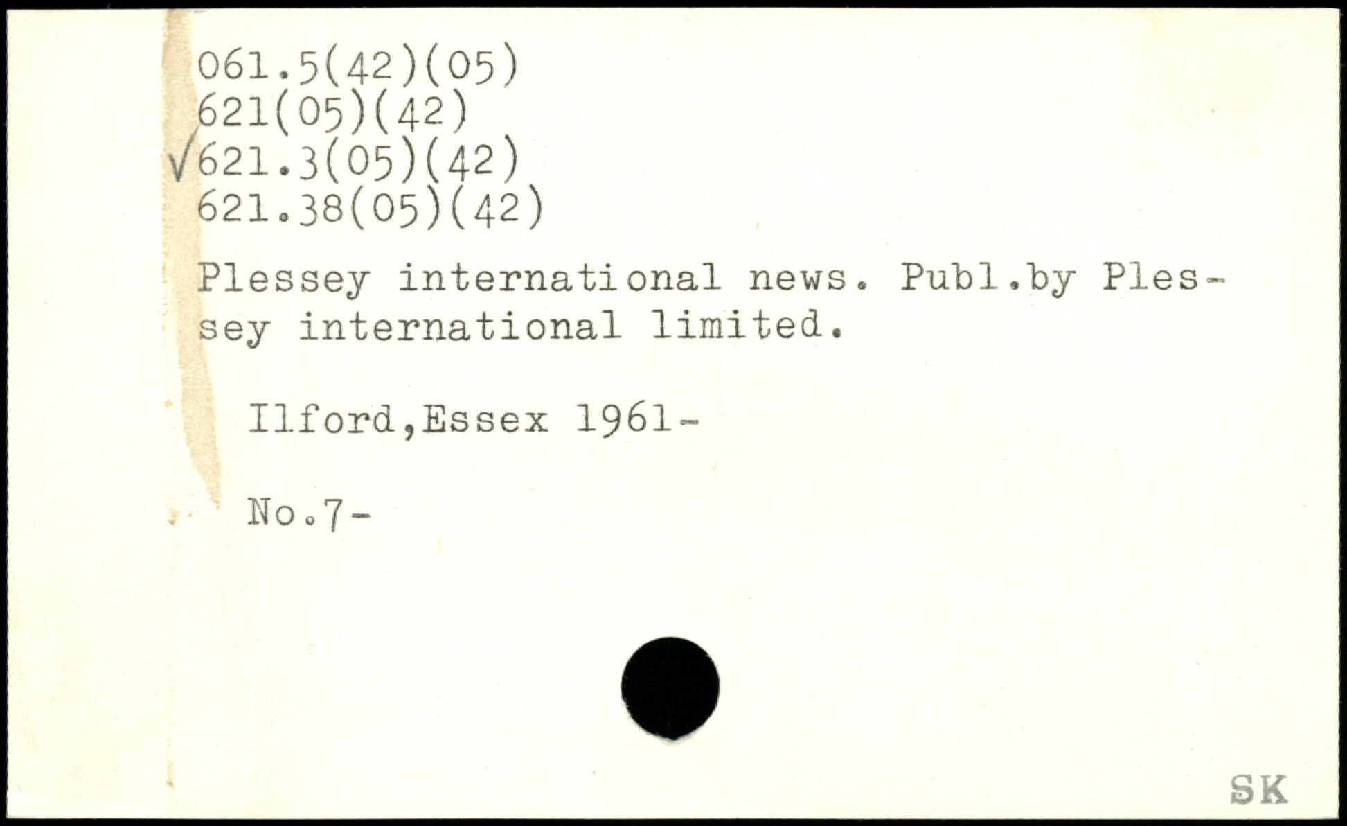 Plessey international news. Pull,by Ples-sey international limited, Ilford,Essex 1961- V No o 7-