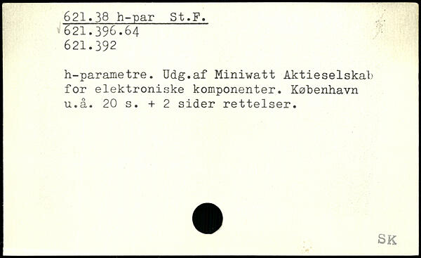 h-parametre. Udg.af Miniwatt Aktieselskal' for elektroniske komponenter. København u.å.