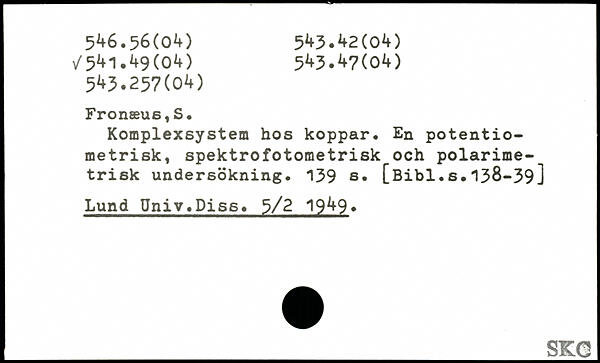 Komplexsystem hos koppar. En potentio-metrisk, spektrofotometrisk och polarime-trisk undersökning.