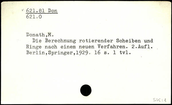 Donath,Ma Die Berechnung rotierender Scheiben und Ringe nach einem neuen Verfahren.
