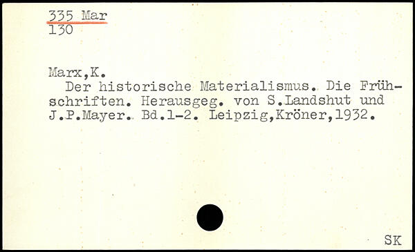 Der historische Materialismus, Die Frühschriften. Herausgeg. von S.Landshut und J.P.Mayer.