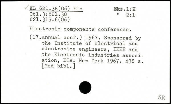 Electronic components conference. (17.annual conf.) 1967, Sponsored by the Institute of electrical and electronics engineers, IEEE and the Electronic industries association, EIA.