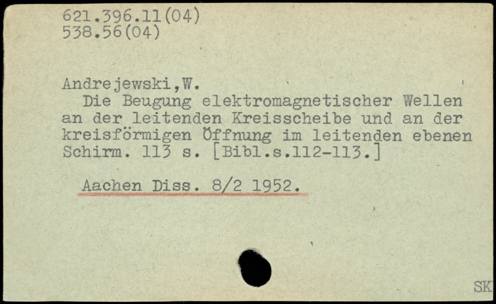 Die Beugung elektromagnetischer Wellen an der leitenden Kreisscheibe und an der kreisförmigen Öffnung im leitenden ebenen Schirm.