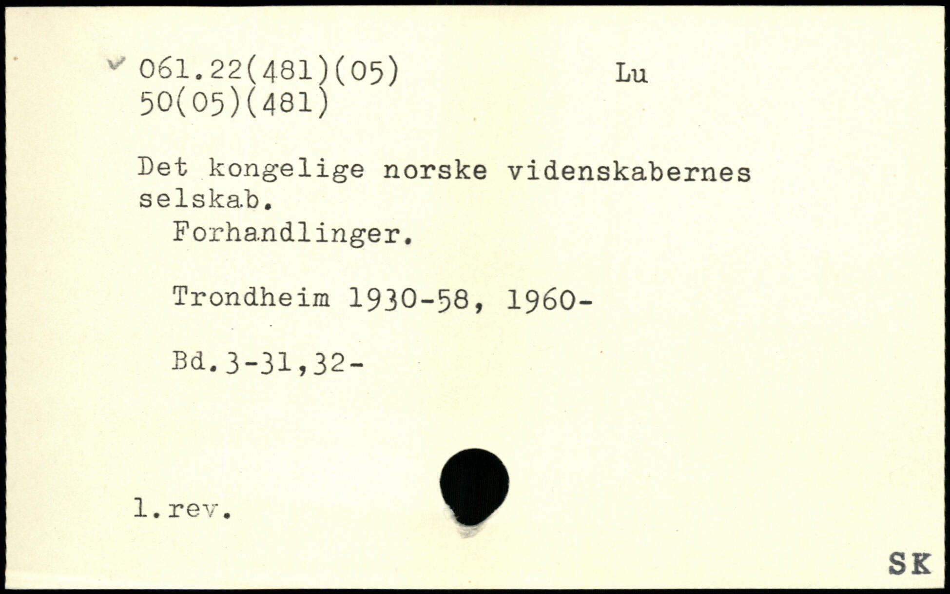 Det kongelige norske videnskabernes selskab. Forhandlinger.