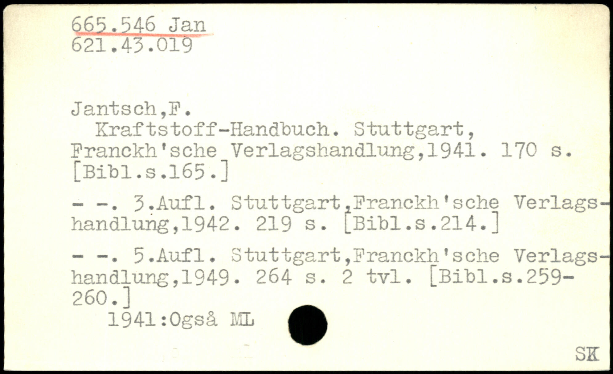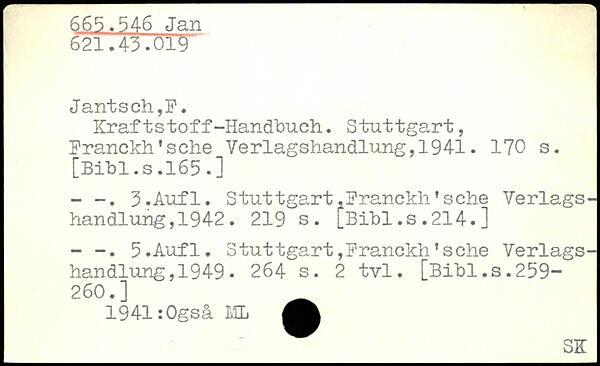 Kraftstoff-Handbuch.. Stuttgart, Franckh'sche Verlagshandlung,1941.
