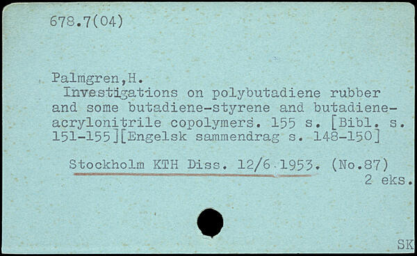 Investigations on polybutadiene rubber and some butadiene-styrene and butadiene-acrylonitrile copolymers.