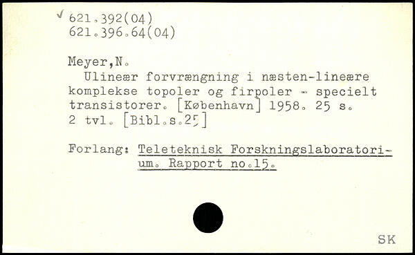 Ulineær forvrængning i næsten-lineære komplekse topoler og firpoler ~ specielt transistorer.