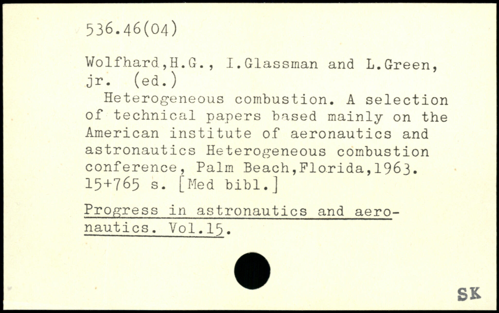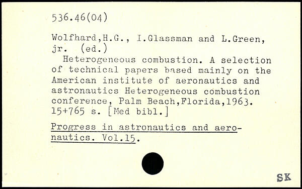 Wolfhard, H. G. , I.G1 assrnan and L.Green, jr. (ed.) Heterogeneous combustion. A selection of technical papers based mainly on the American institute of aeronautics and astronautics