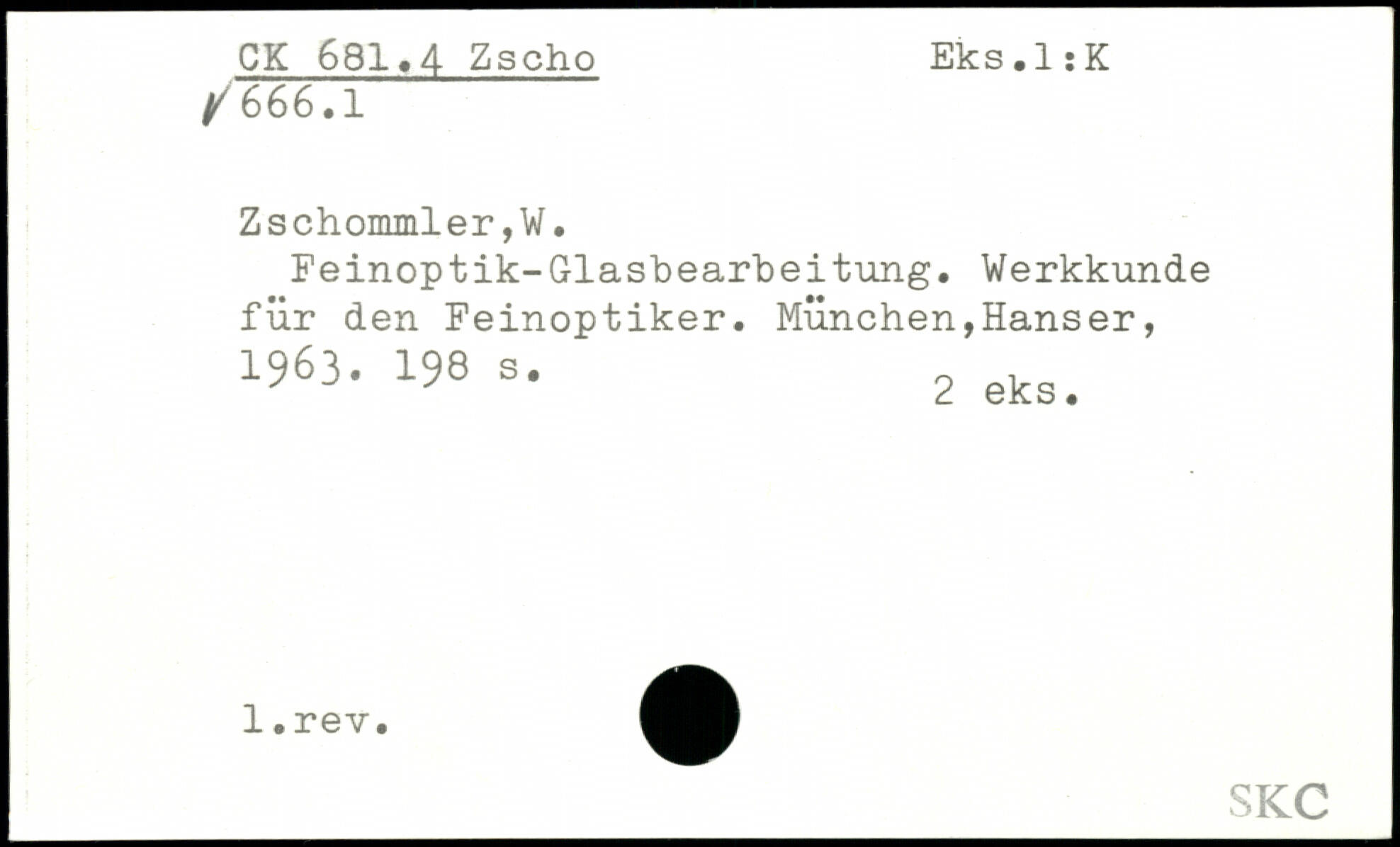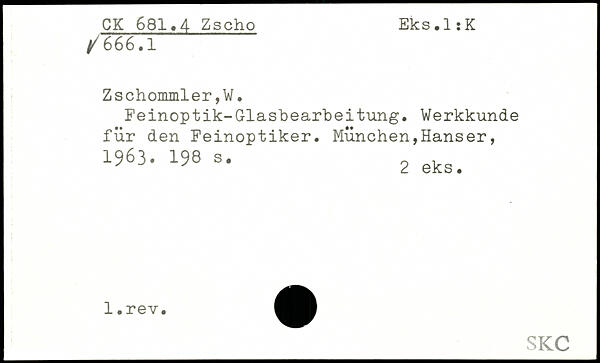 Feinoptik-Glasbearbeitung. Werkkunde für den Feinoptiker. München,Hanser, ^ 198 3. 2 eks.